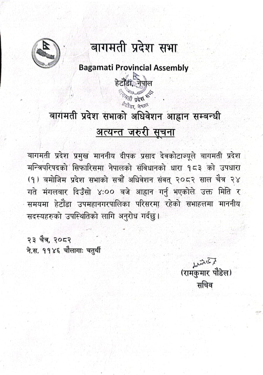 प्रदेश सभा सचिव: कार्यालय (०५७-५२७५०५) निवास (०५७-५२४७३६)