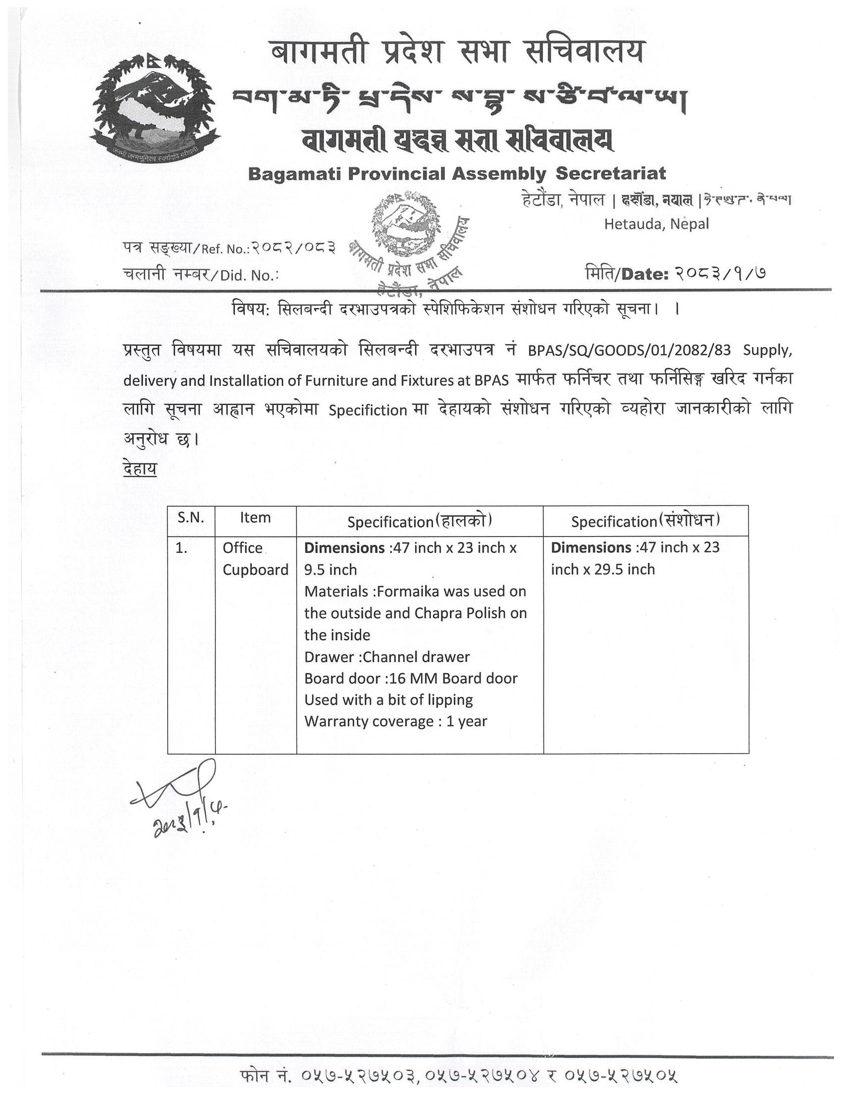 सिलबन्दी दरभाउपत्रको स्पेशिफिकेशन संसोधन गरिएको सूचना।