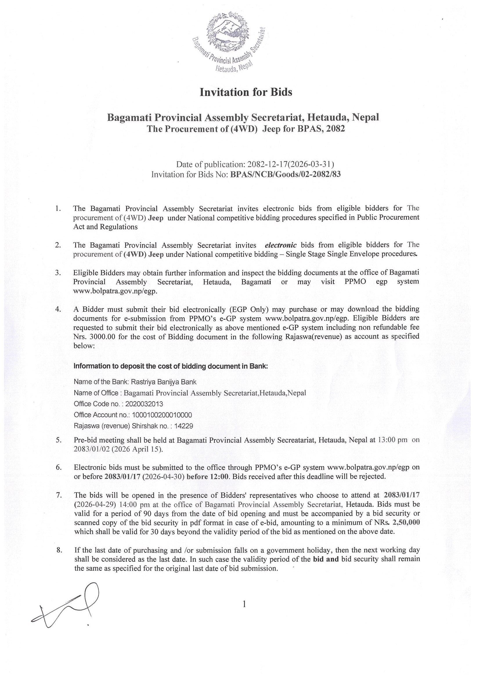 The Procurement of (4WD) Jeep for BPAS, 2082